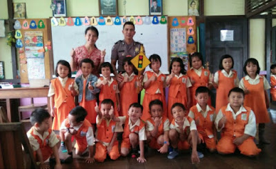 memperkenalkan diri kepada murid-murid TK agar tidak lagi takut dengan Polisi