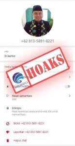 Beredar sebuah akun WhatsApp dengan nomor +62813-5891-8221 yang mengatasnamakan Sekretaris Daerah (Sekda) Kota Depok Supian Suri dan menampilkan wajah Sekda Supian pada foto pro?lnya.