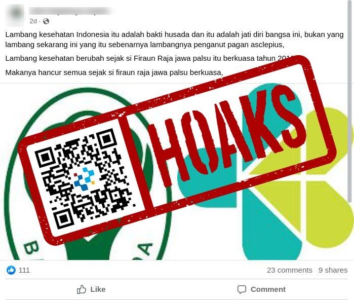 Beredar sebuah unggahan di media sosial Facebook berisi narasi yang mengeklaim logo Kementerian Kesehatan Republik Indonesia (Kemenkes) melambangkan penganut Asclepius.