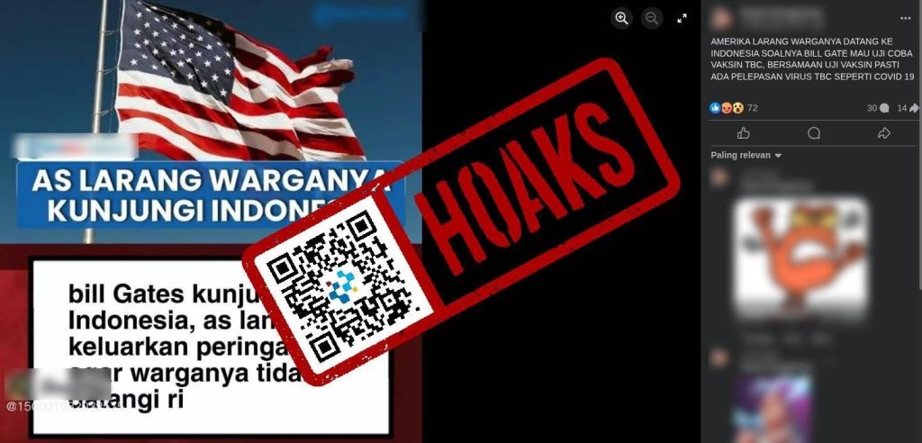 Beredar sebuah unggahan di media sosial Facebook yang mengeklaim bahwa Pemerintah Amerika Serikat (AS) melarang warganya untuk tidak berkunjung ke Indonesia karena adanya uji coba vaksin Tuberkulosis (TBC) Bill Gates.