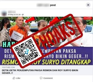 Beredar sebuah narasi di media sosial Facebook pada Sabtu, 24 Mei 2025 yang menginformasikan bahwa mantan Menteri Pemuda dan Olahraga Roy Suryo serta ahli digital forensik Rismon Sianipar dijemput paksa aparat hukum.