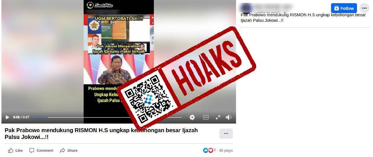 Beredar sebuah unggahan video di media sosial Facebook yang mengeklaim Presiden Prabowo Subianto mendukung ahli digital forensik Rismon Sianipar mengungkap dugaan ijazah palsu Presiden ke-7 Indonesia Joko Widodo (Jokowi).