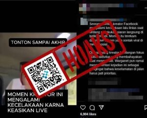 Beredar video yang diunggah di Instagram yang diklaim merupakan detik-detik terjadinya kecelakaan dan setelah kecelakaan. Video tersebut berisi narasi “TONTON SAMPAI AKHIR. MOMEN KREATOR INI MENGALAMI KECELAKAAN KARNA KEASIKAN LIVE”.
