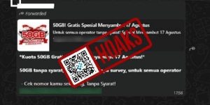 Beredar pesan berantai di aplikasi WhatsApp berisi tautan yang diklaim untuk mendapatkan kuota internet gratis sebesar 50 GB dalam rangka menyambut Hari Kemerdekaan Republik Indonesia yang ke-80.