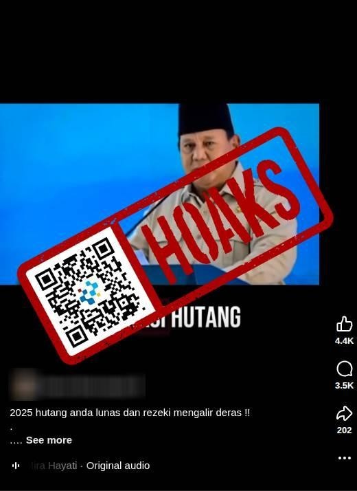 Beredar unggahan video di media sosial Facebook yang mengeklaim bahwa Presiden Prabowo akan melunasi utang rakyat Indonesia menggunakan dana pribadi.