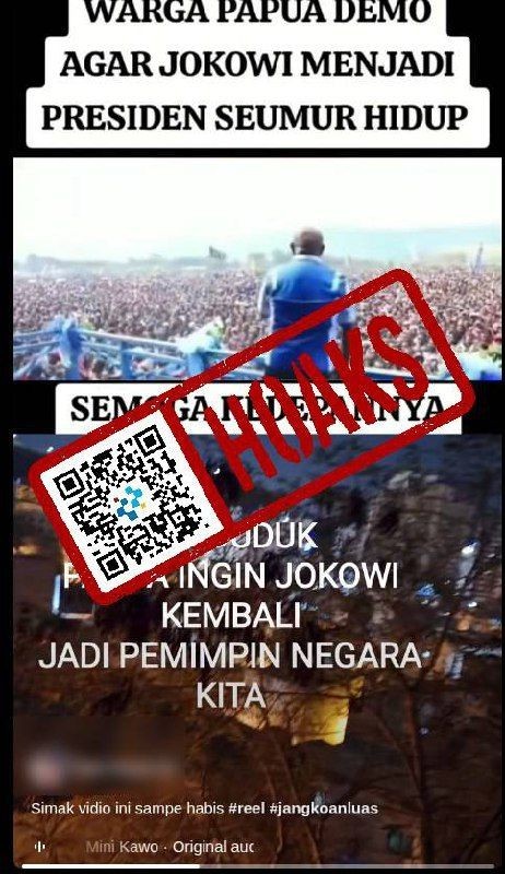 Beredar sebuah unggahan video di media sosial Facebook yang mengeklaim warga Papua minta Presiden ke-7 Joko Widodo (Jokowi) kembali pimpin negara.