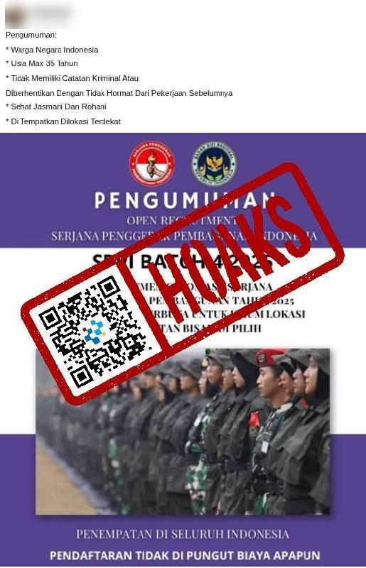Beredar unggahan di media sosial Facebook berisi tautan yang mengeklaim terdapat rekrutmen Sarjana Penggerak Pembangunan Indonesia (SPPI) batch 4.