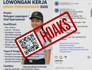 Beredar unggahan di media sosial Instagram sebuah informasi lowongan kerja untuk posisi petugas lapangan mengatasnamakan Dinas Perhubungan.