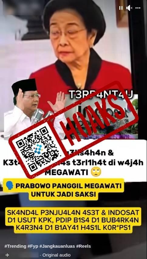 Beredar sebuah video di media sosial Facebook yang berisi klaim narasi bahwa Presiden Prabowo Prabowo panggil mantan Presiden Republik Indonesia ke-5 Megawati Soekarnoputri sebagai saksi kasus korupsi Indosat.
