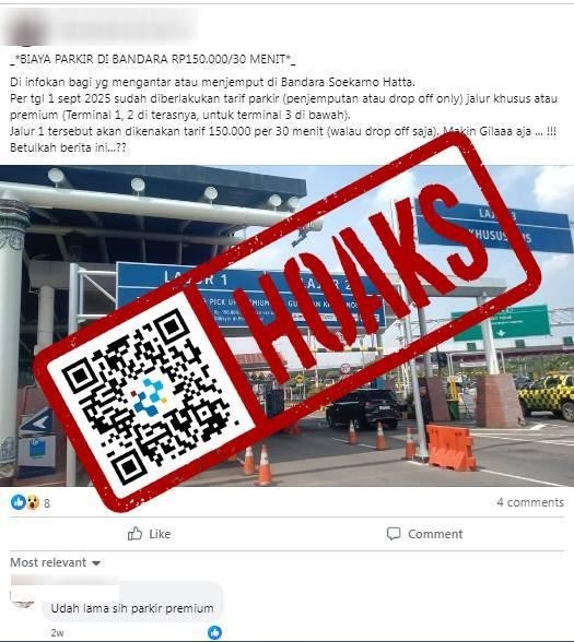 Faktanya, klaim tersebut adalah tidak benar atau hoaks. Dilansir dari jalahoaks.jakarta.go.id, berdasarkan hasil penelusuran dalam laman berita kompas.com, telah ditemukan foto yang identik dengan unggahan. Foto itu diunggah akun Instagram @commercialcare pada 27 Agustus 2025. Unggahan tersebut menjelaskan bahwa tarif yang beredar merupakan layanan premium Bandara Internasional Soekarno Hatta. Tarif ini tidak berlaku bagi semua kendaraan yang akan parkir di Bandara Soetta. Adapun, mengutip M. Holik Muardi selaku Deputy Branch Communication C Legal Bandara International Soekarno Hatta, bahwa fasilitas ini lebih premium dan lebih mudah serta dekat ke area terminal serta terlindungi dengan adanya kanopi bagi kendaraan yang diparkirkan di area parkir Terminal 3 Bandara Soekarno Hatta.