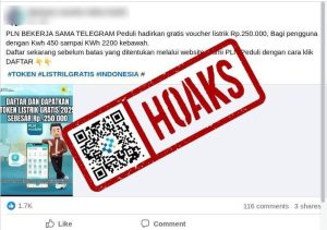 Beredar sebuah unggahan di media sosial Facebook yang mengeklaim bahwa Perusahaan Listrik Negara (PLN) bekerja sama dengan Telegram membagikan token listrik gratis.