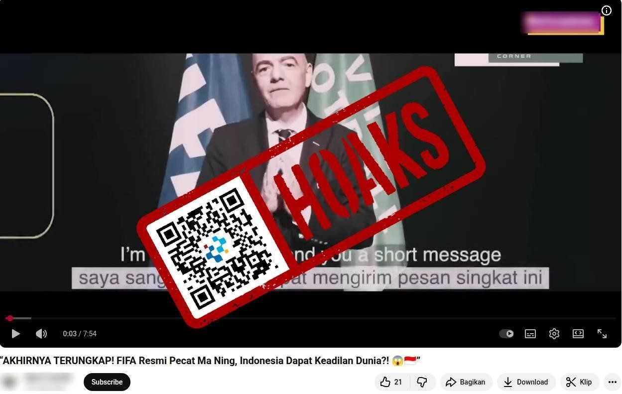Beredar sebuah unggahan video di media sosial YouTube dengan narasi yang mengeklaim bahwa FIFA pecat wasit Ma Ning setelah laga Tim Nasional (Timnas) Indonesia vs Irak.