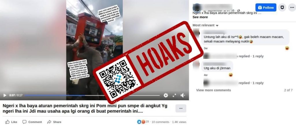 Beredar sebuah unggahan di media sosial Facebook yang mengeklaim bahwa Satuan Polisi Pamong Praja (Satpol PP) melakukan penertiban dengan mengangkut stand pom mini di Balikpapan karena aturan pemerintah yang melarang menjual bahan bakar minyak (BBM) secara eceran.