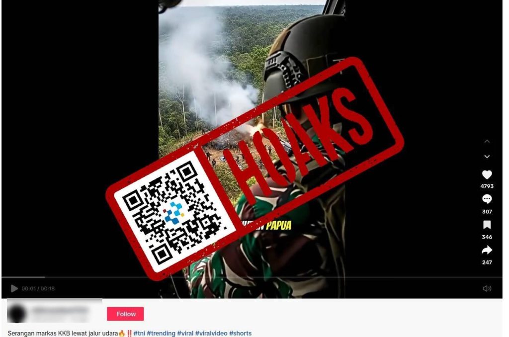 Beredar sebuah unggahan video di media sosial TikTok yang mengeklaim bahwa terdapat video serangan markas Kelompok Kriminal Bersenjata (KKB) oleh Tentara Nasional Indonesia (TNI) lewat jalur udara.