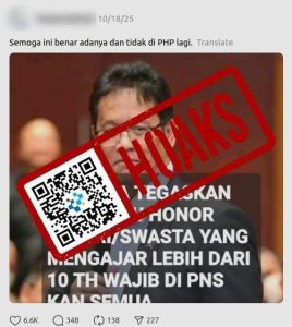 Link Counter : https://turnbackhoax.id/2025/10/28/salah-menkeu-purbaya-tegaskan-2026-guru-nege ri-swasta-wajib-pns/