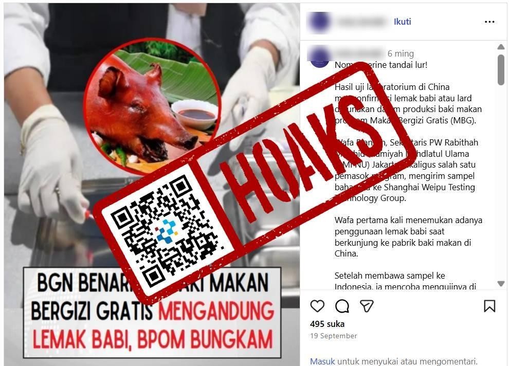 Beredar sebuah unggahan di media sosial Instagram yang mengeklaim bahwa Badan Gizi Nasional (BGN) membenarkan bahwa baki program Makanan Bergizi gratis mengandung lemak babi.