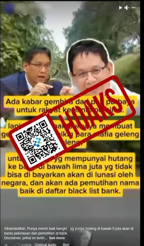 Beredar sebuah unggahan video di media sosial Facebook yang mengeklaim bahwa negara akan melunasi hutang bank bagi warga negara di bawah Rp5 juta.