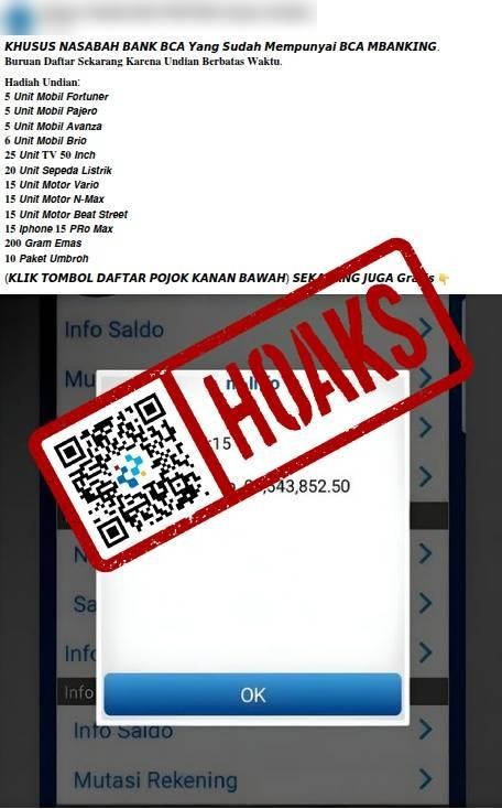 Beredar sebuah unggahan di media sosial Facebook berisi tautan yang diklaim untuk mengikuti undian Gebyar Hadiah BCA pada November 2025. Hadiah undian yang ditawarkan berupa mobil, televisi, sepeda listrik, sepeda motor, ponsel, emas, dan umrah gratis.