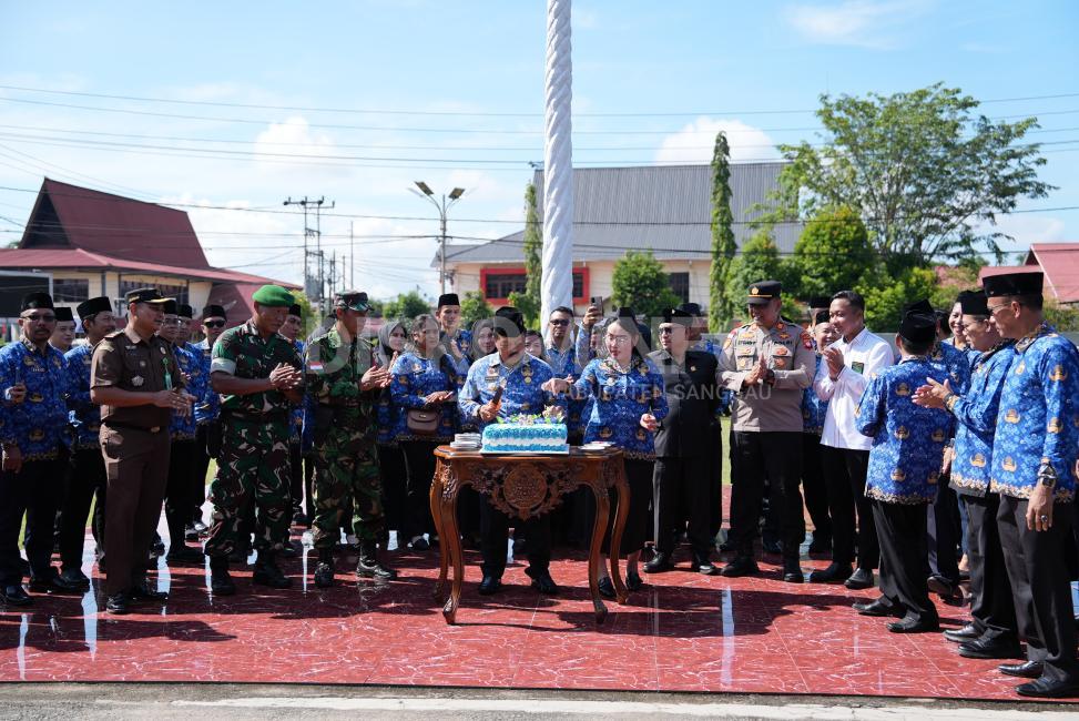Upacara berlangsung khidmat dengan dihadiri Wakil Bupati Sanggau, unsur Forkopimda, para kepala perangkat daerah, serta seluruh anggota KORPRI di lingkungan Pemerintah Kabupaten Sanggau.