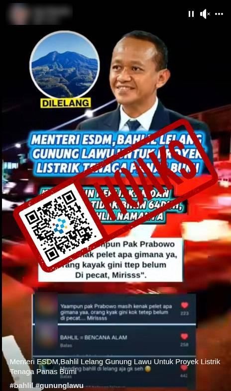 Beredar undangan di media sosial Facebook berisi narasi yang mengeklaim Menteri Menteri Energi dan Sumber Daya Mineral (ESDM) Bahlil Lahadalia melelang Gunung Lawu untuk proyek listrik tenaga panas bumi.