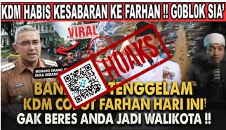 Faktanya, klaim yang menyebutkan Dedi Mulyadi copot Farhan karena Bandung tenggelam adalah hoaks. Dilansir dari saberhoaks.jabarprov.go.id, tidak ditemukan adanya berita terkait klaim tersebut. Setelah ditelusuri, Isi video tersebut merupakan gabungan beberapa gambar yang identik berasal dari media berbeda diantaranya: Pertama, Foto Dedi Mulyadi yang terlihat menunjuk serta mengenakan jas putih dan kopiah hitam identik dengan gambar pada artikel pikiran-rakyat.com. Kedua, foto Farhan yang mengenakan seragam dinas berwarna coklat identik dengan gambar pada hasanah.id.
