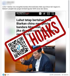 Beredar sebuah unggahan di media sosial Facebook tangkapan layar artikel yang mengeklaim Luhut Binsar Panjaitan mengatakan biarkan Cina mengelola Bandara Morowali dan jika dicegah, dirinya akan keluar dari negara.