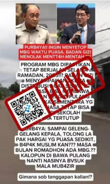 Beredar sebuah unggahan di media sosial dengan narasi yang mengklaim Menteri Keuangan (Menkeu) Purbaya Yudhi Sadewa ingin menghentikan program Makan Bergizi Gratis (MBG) saat puasa atau bulan Ramadan.