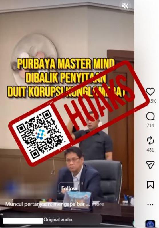 Beredar sebuah unggahan video di media sosial Instagram yang mengeklaim Menteri Keuangan (Menkeu) Purbaya Yudhi Sadewa adalah mastermind penyitaan uang korupsi konglomerat.