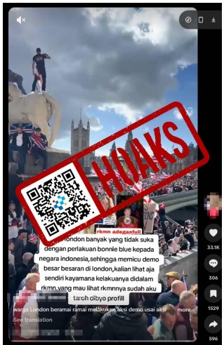 Beredar di media sosial TikTok sebuah video yang memperlihatkan aksi demonstrasi massa di Kota London, Inggris. Dalam video terdapat narasi “warga london banyak yang tidak suka dengan perlakuan bonnie blue kepada negara indonesia, sehingga memicu demo besar besaran di london”.