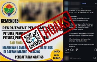 Beredar unggahan di media sosial berisi tautan yang mengeklaim untuk mengikuti rekrutmen Pendamping Lokal Desa (PLD) 2026. Informasi itu mengatasnamakan Kementerian Desa dan Pembangunan Daerah Tertinggal.