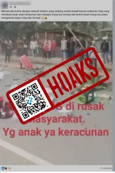 Beredar unggahan di media sosial Facebook sebuah foto yang diklaim menampilkan masyarakat merusak dapur Makan Bergizi Gratis (MBG) karena anaknya keracunan.
