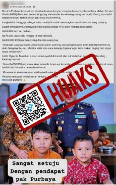 Beredar unggahan di media sosial Facebook berisi narasi yang mengeklaim usulan Menteri Keuangan terkait penyaluran dana Makan Bergizi Gratis (MBG) dilakukan secara langsung via transfer ke rekening orang tua murid.