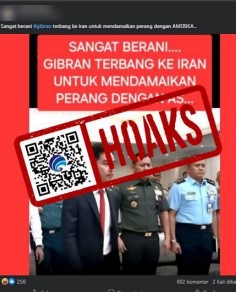 Beredar sebuah unggahan di media sosial Facebook yang mengeklaim bahwa Wakil Presiden Gibran Rakabuming Raka siap mendamaikan konflik antara Iran dengan Amerika Serikat (AS) dan Israel.