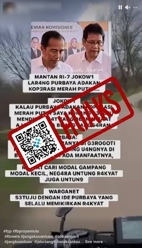 Beredar unggahan di media sosial Facebook berisi narasi yang menyebut Presiden ke-7 RI Joko Widodo (Jokowi) melarang Menteri Keuangan Purbaya Yudhi Sadewa untuk menjalankan program Koperasi Merah Putih. Dalam narasi tersebut, Jokowi disebut tidak setuju karena dianggap membuang anggaran, sementara Purbaya digambarkan membela program tersebut sebagai upaya membantu rakyat mendapatkan modal usaha.