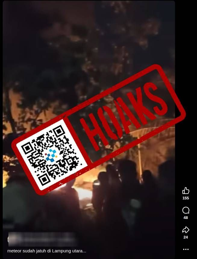 Beredar sebuah unggahan video di media sosial Facebook yang mengklaim meteor jatuh di Kabupaten Lampung Utara. Video tersebut memperlihatkan kobaran api dan sekumpulan orang disekitarnya.