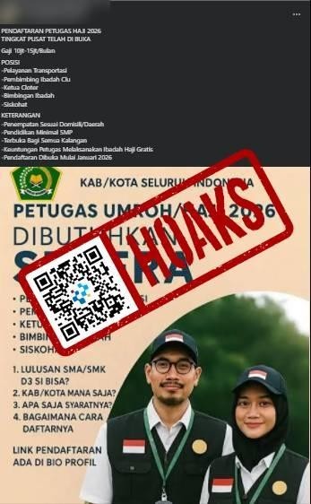 Faktanya, klaim tersebut adalah tidak benar. Dilansir dari kompas.com, seleksi petugas haji 2026 telah ditutup. Sementara itu, tautan yang beredar di Facebook menuju ke sebuah laman yang meminta pengunjung memasukkan nama lengkap, asal provinsi, jenis kelamin, dan nomor Telegram. Adapun, Kementerian Haji dan Umrah RI dalam akun Instagram resminya @kwmnwhaj,ri, mengimbau masyarakat waspada dengan hoaks terkait petugas haji, misalnya dokumen palsu terkait pengumuman petugas haji 2026.