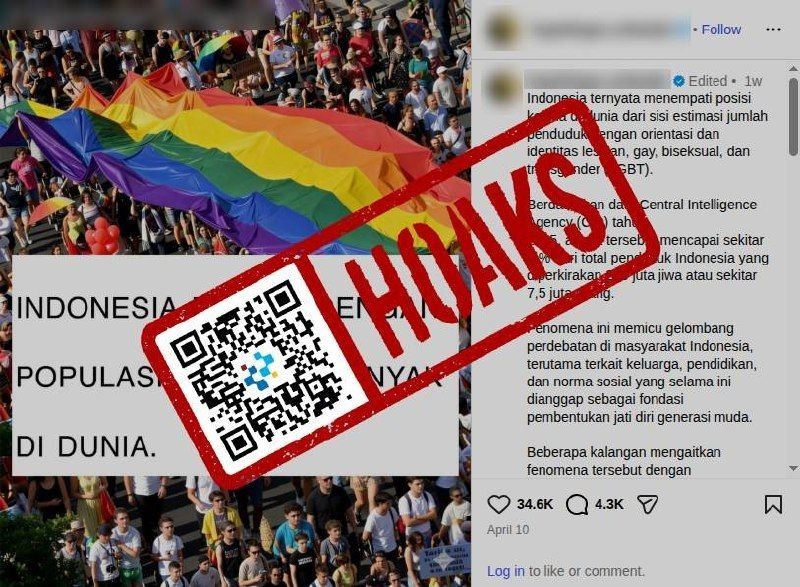 Beredar unggahan di media sosial Instagram berisi narasi yang mengeklaim Indonesia berada di peringkat ke lima dunia dengan jumlah populasi lesbian, gay, biseksual, dan transgender (LGBT) terbanyak. Narasi tersebut juga mencatut nama lembaga intelijen Amerika Serikat Central Intelligence Agency (CIA) sebagai sumber data.