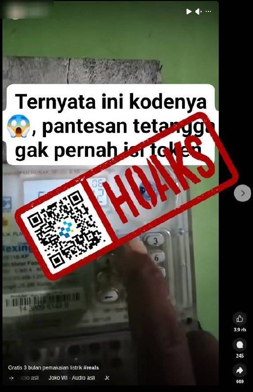Faktanya, klaim kode token tertentu membuat listrik gratis tiga bulan adalah hoaks. Dilansir dari tempo.co, Manager PLN Unit Layanan Pelanggan (ULP) Kabupaten Lamongan Selamet, menyatakan secara teknis cara tersebut tidak bisa membuat token listrik bertahan hingga tiga bulan. Dosen Teknik Elektro Universitas Riau Dr. Iswadi Hasyim Rosma, juga menyatakan jika hal itu terjadi, PLN akan merugi.